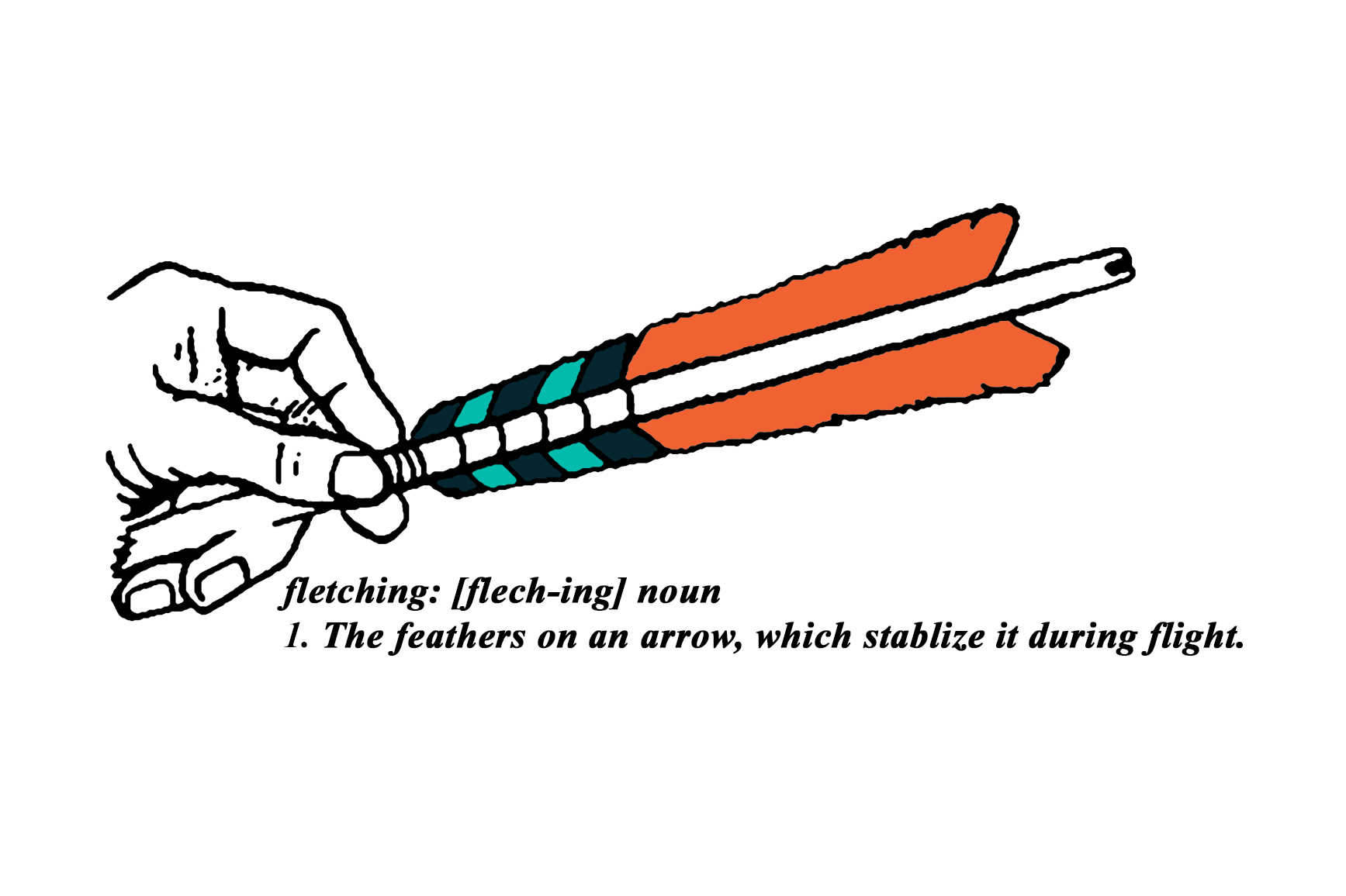 A fletching is the tail feather of an archery arrow, which guides and stabilizes the arrow during flight. We thought this was the appropriate direction for a product that is intended to keep college students engaged and on target.